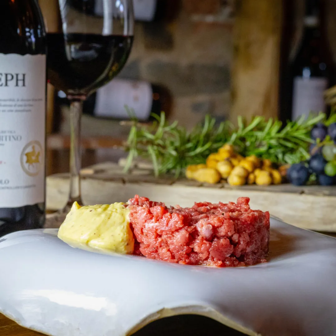 Dalla carne cruda battuta al coltello ai tajarin fatti a mano, fino alle creazioni più creative dello Chef, ogni portata sarà accompagnata dai nostri vini numerati, come il Dolcetto di Dogliani D.O.C.G. "Vittoria Eleonora".